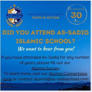 We invite alumni to please complete the Alumni Survey so we can connect, get to know about your life after As-Sadiq Islamic School and explore ways in which you’d like to stay connected to the school.